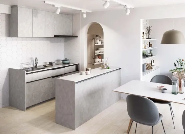 アイランド型よりもコンパクトに収まり、マンションの間取りにも無理なく導入可能です。